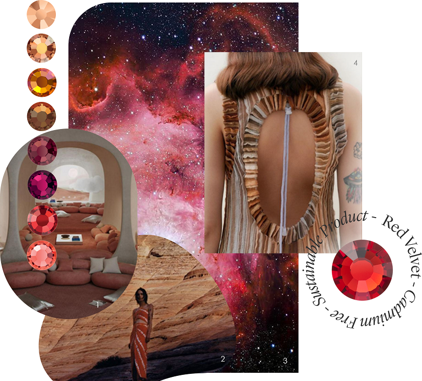 太空旅游竞赛见证了星际风格对未来色彩、设计和技术的影响。 使用宝仕奥莎的无镉红丝绒色进一步演绎铁锈色,重点关注其闪闪发光的表面,以反映火星的火山景观。