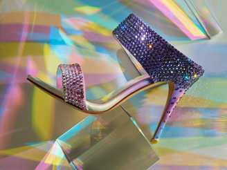 创新的 3D 打印设计与丁香灰工艺水晶的璀璨优雅相得益彰,未来主义时尚灵感由此迸发。科技与魅力的融合,重新定义当代鞋履。