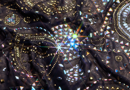 灵感来源于浩瀚无垠的星空,这款令人惊艳的设计,将宝仕奥莎平底石工艺水晶巧妙地融入面料之中,赋予其宇宙般的深邃与璀璨。